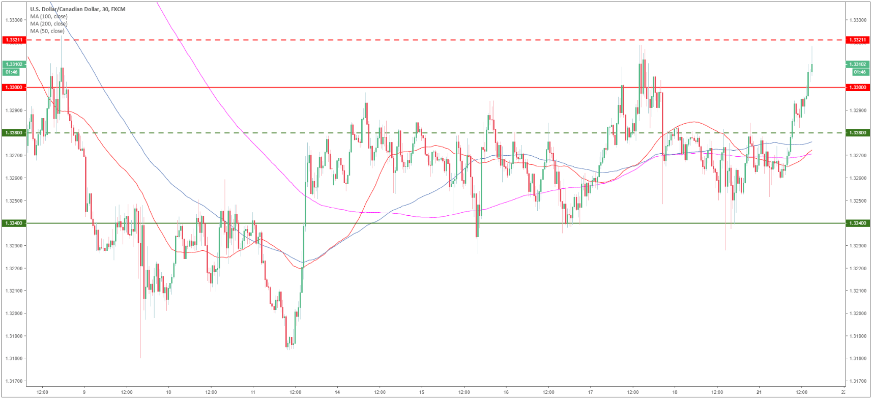 USD/CAD 30-minute chart