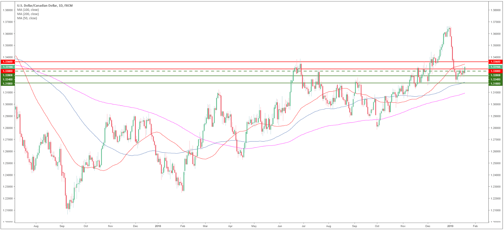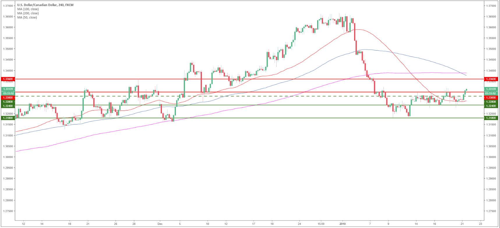 - USD/CAD bulls regained control above the 50 SMA as the market is now trading above the 1.3300 psychological mark.