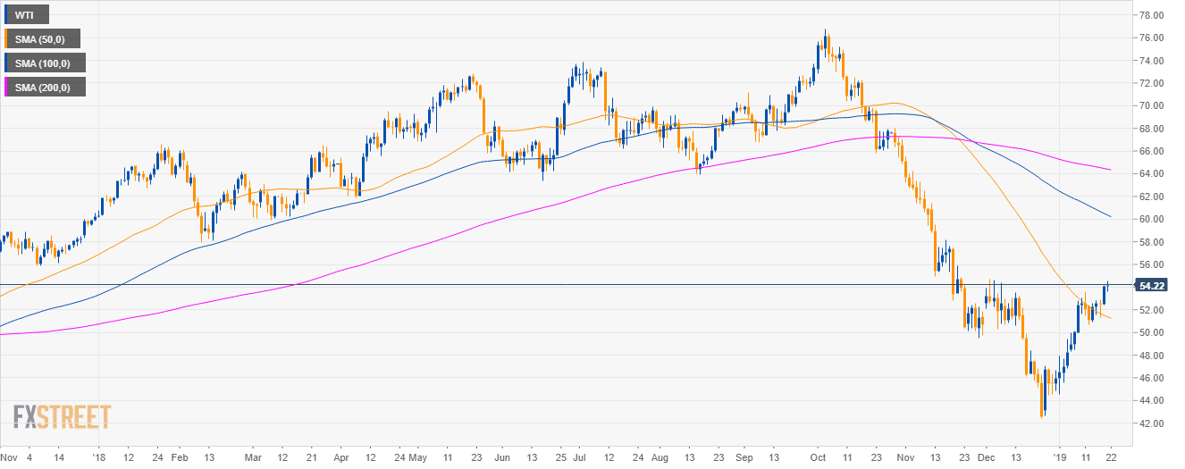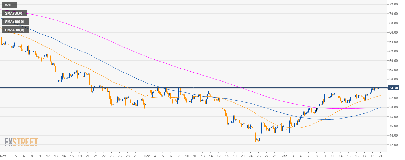 - However, bulls broke above the 54.00 figure and the 50 SMA.