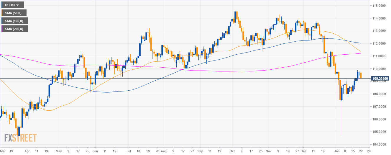 - As bears broke below the 109.40 support and the 200 SMA, USD/JPY is set to continue the decline to the 109.00 figure.