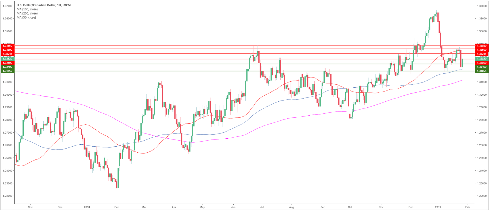 - USD/CAD is currently finding resistance near the 100 SMA below the 1.3300 figure.