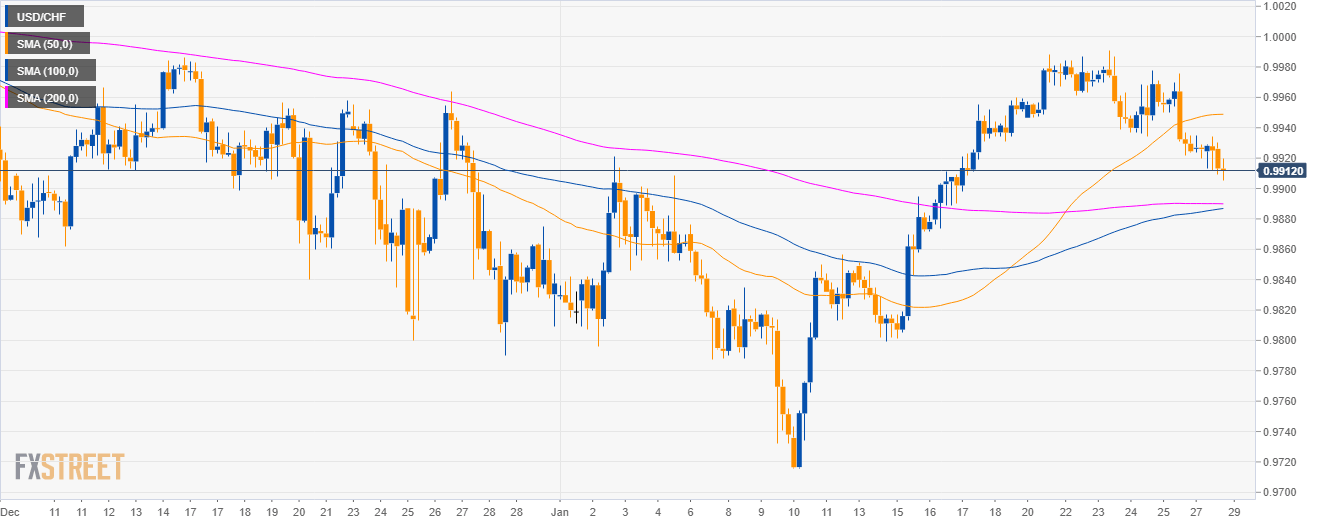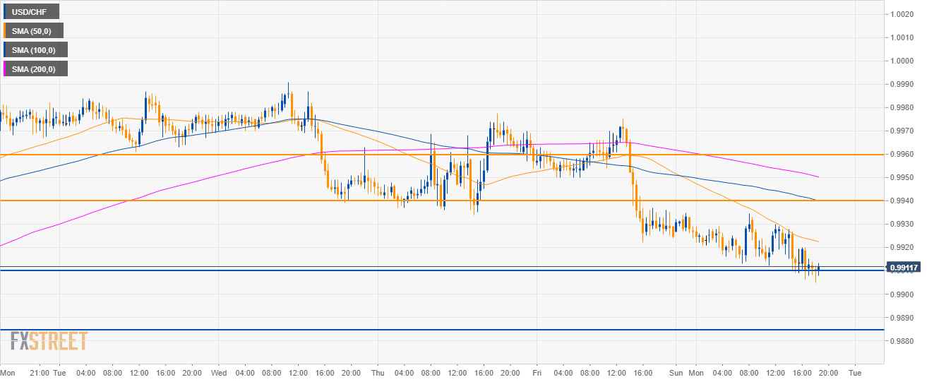 USD/CHF Technical Analysis: The Greenback drop is landing on 0.9910 support
