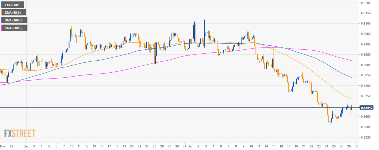 EUR/GBP Technical Analysis: Euro is trading at daily high and challenging the 0.8700 resistance ahead of Brexit votes