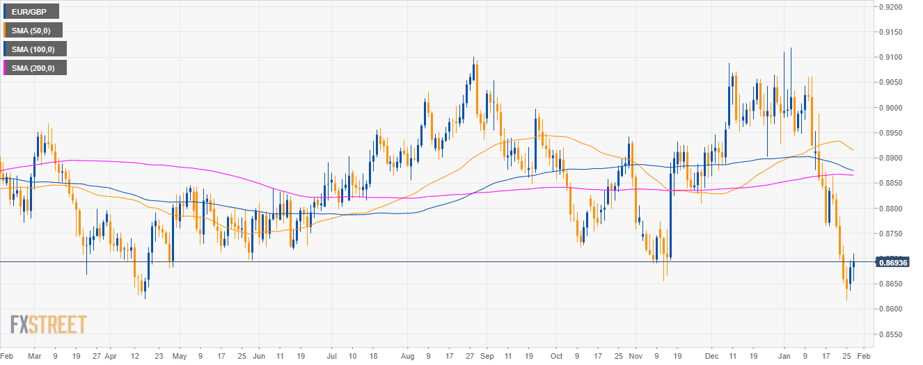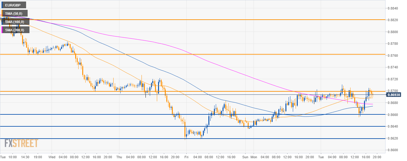 • EUR/GBP bulls are challenging the 0.8700 figure as the market regained its main SMAs.