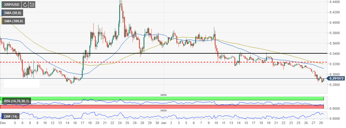 Ripple has been trending lower from the highs recorded in December 2018. There have been several selloffs that have slashed the value of XRP in the past several weeks. The declines on Monday this week sent the digital asset back to the lows traded in December 2018 around $0.28. While Ripple recovered significantly from main support (lows of December 2018), recovery from the fresh declines is still limited below $0.30.