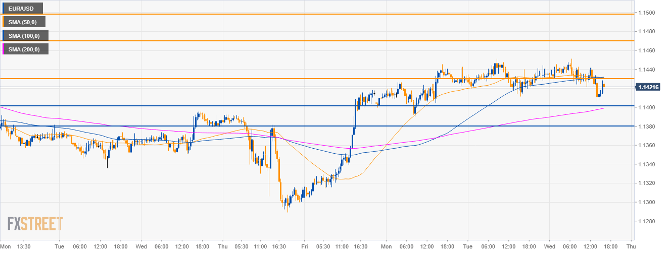 - Bulls are currently testing the 1.1430 level and the 100 SMA. A break above the level should open the gates to 1.1470 and potentially up to 1.1500 figure if bulls gather enough steam.