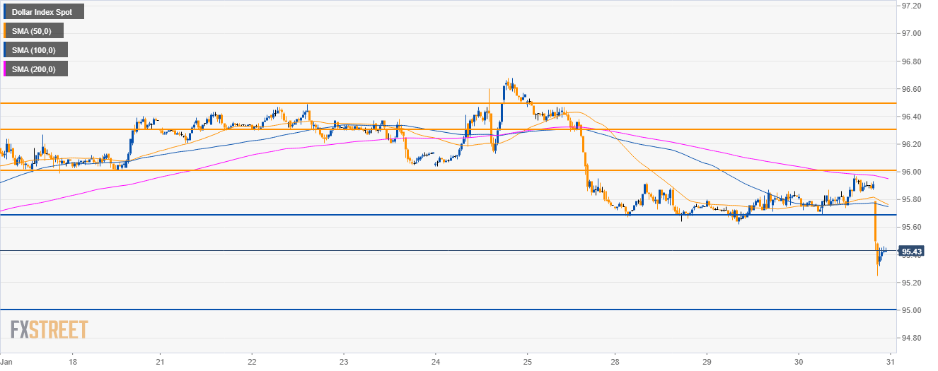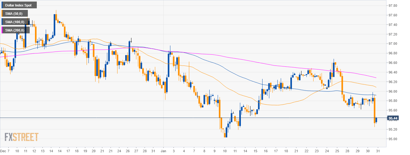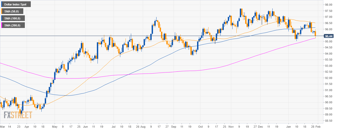 • DXY is trading below the main SMAs and 95.00 is likely the next destination for DXY bears.