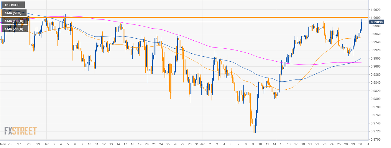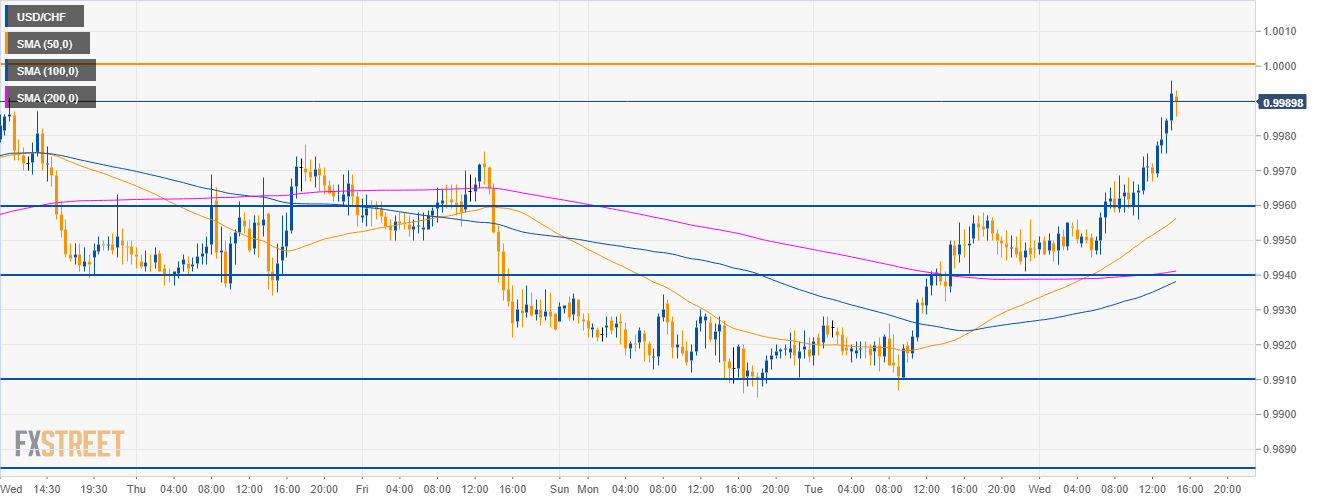 USD/CHF Technical Analysis: Greenback rises near the parity level against the Swiss Franc ahead of the Fed