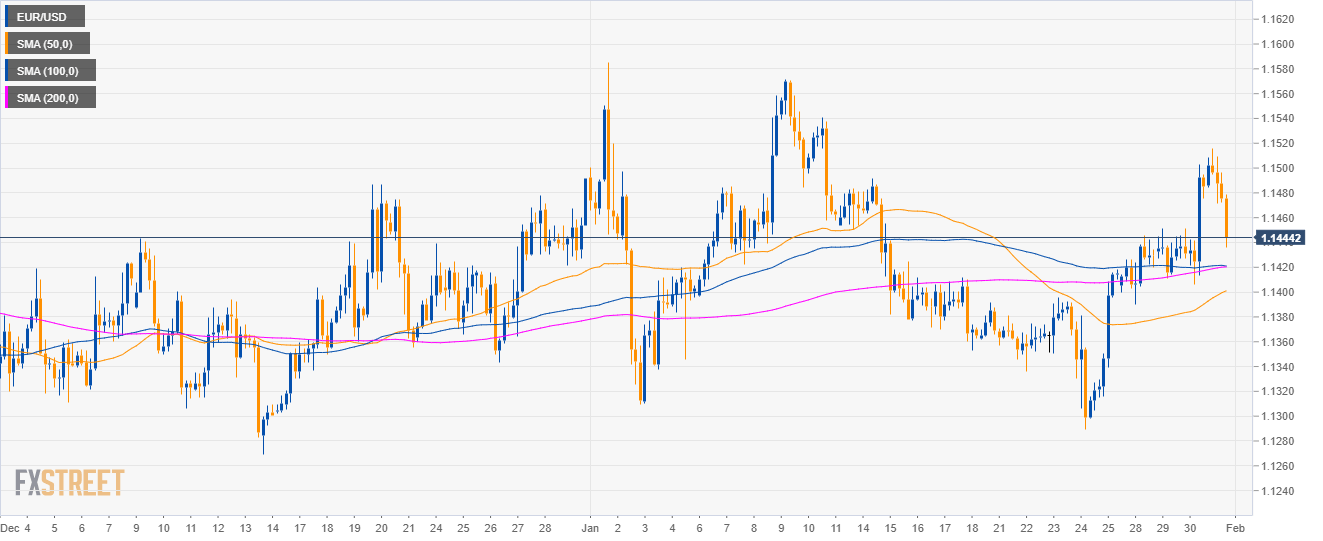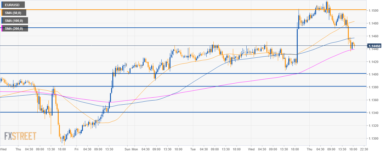 - EUR/USD is trading at daily lows just above the 1.440 level and the 200 SMA.