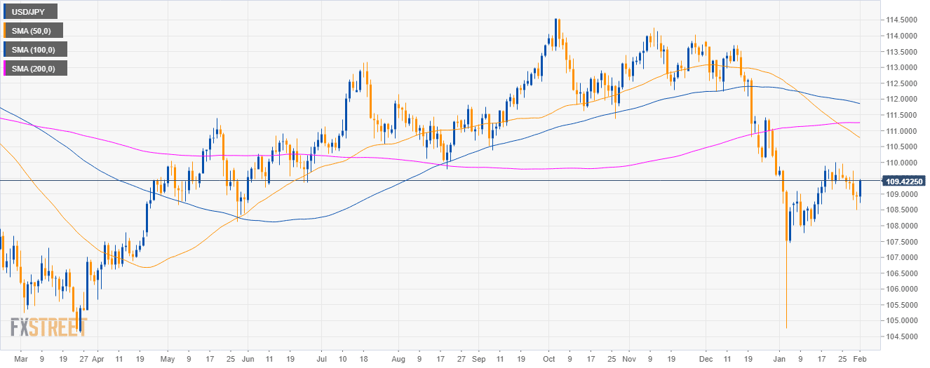 - USD/JPY is trading in a deep pullback below the 50, 100 and 200-day simple moving averages (SMAs) on the daily chart.