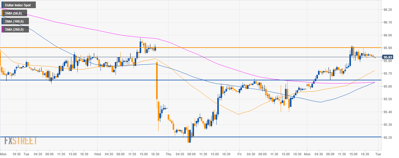- DXY is trading just below the 95.90 resistance.