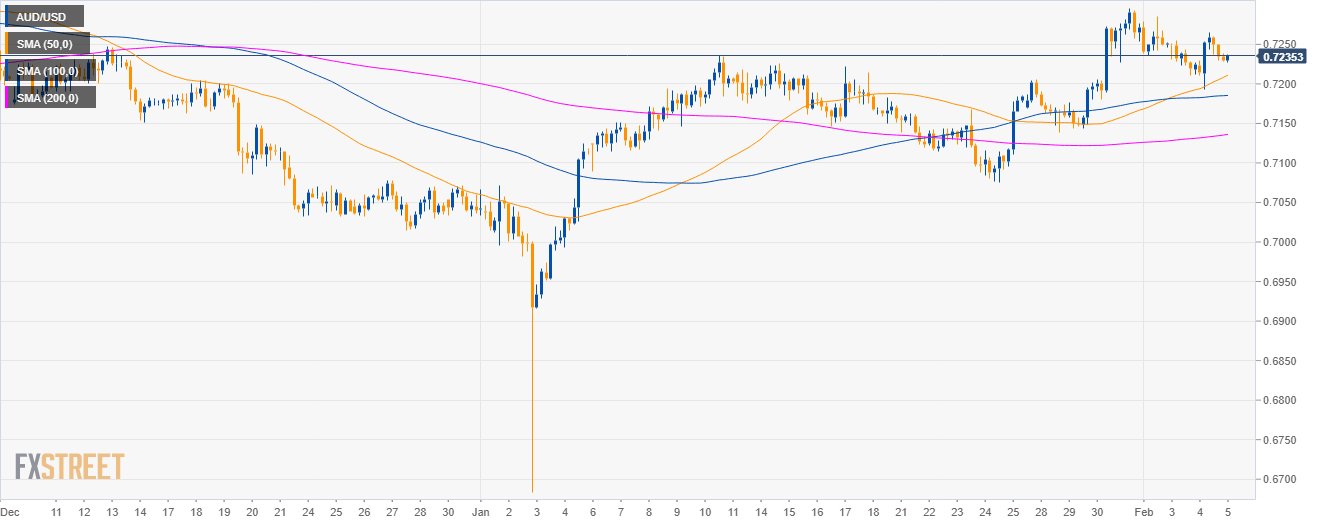 AUD/USD Technical Analysis: Aussie entering the Asian session above the 0.7200 figure