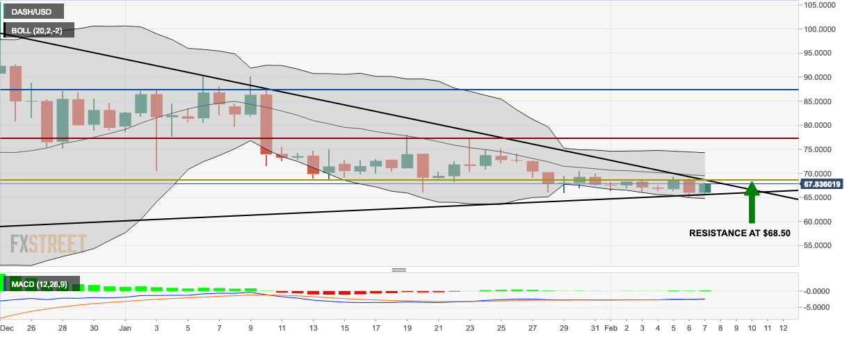 The DASH/USD daily chart shows that the market is about to break out from a triangle formation. To make sure that the breakout is bullish, the buyers will need to do the following: