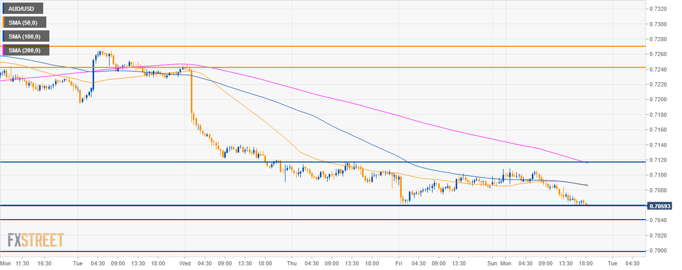 - Bears are challenging last week low and they will need to overcome the 0.7060 support in order to travel to 0.7000 figure to the downside.