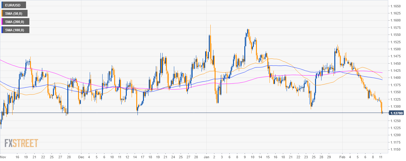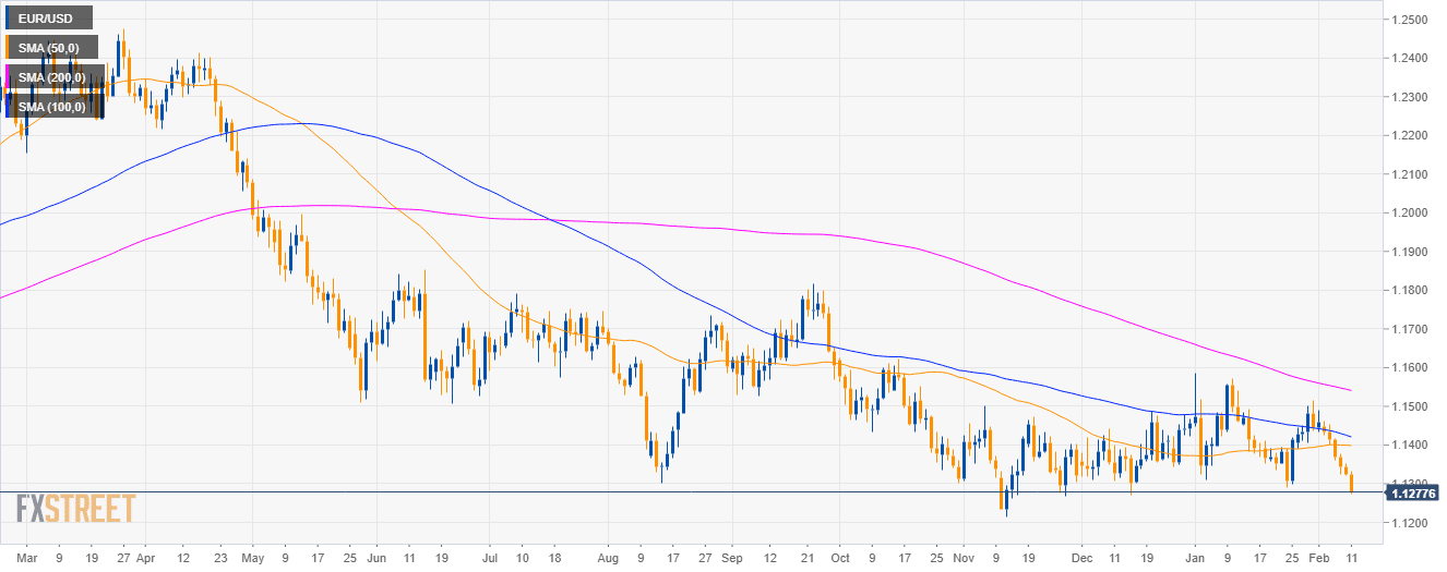 • EUR/USD is trading in a bear trend below the 200-day simple moving average (SMA).