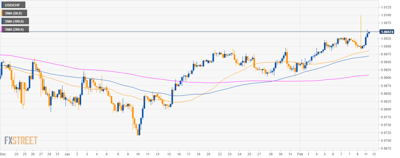 - USD/CHF is trading in a sideways trend above the 50, 100 and 200-day simple moving averages (SMAs).