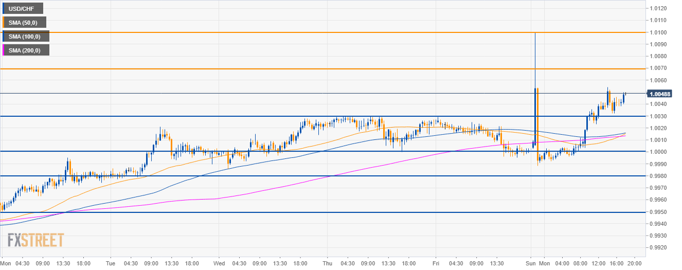 - USD/CHF is evolving above its main SMAs suggesting bullish momentum.