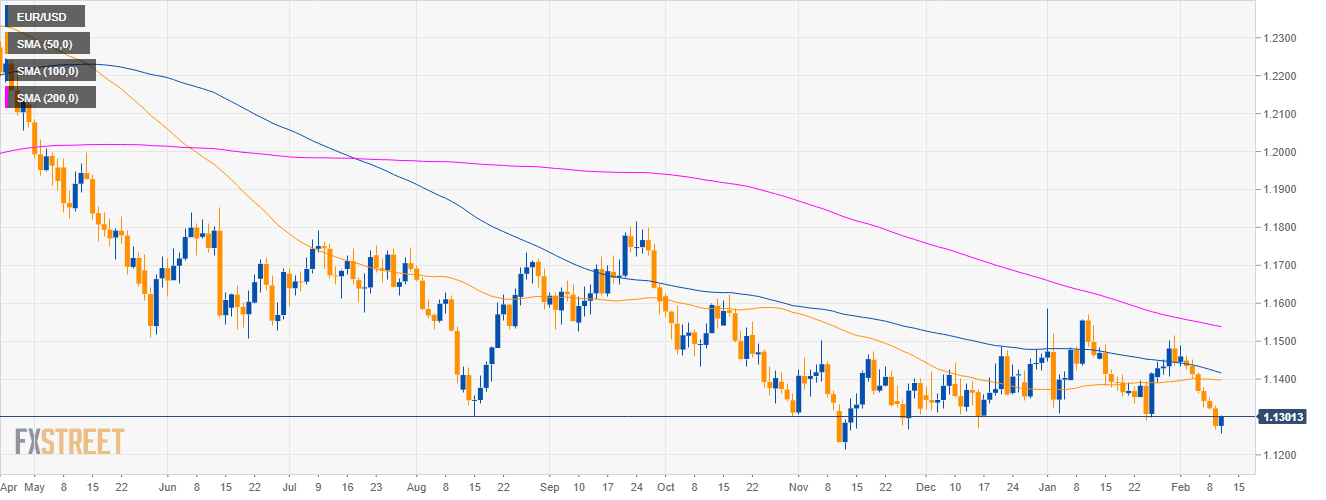 • EUR/USD is trading in a bear trend below the 200-day simple moving average (SMA).