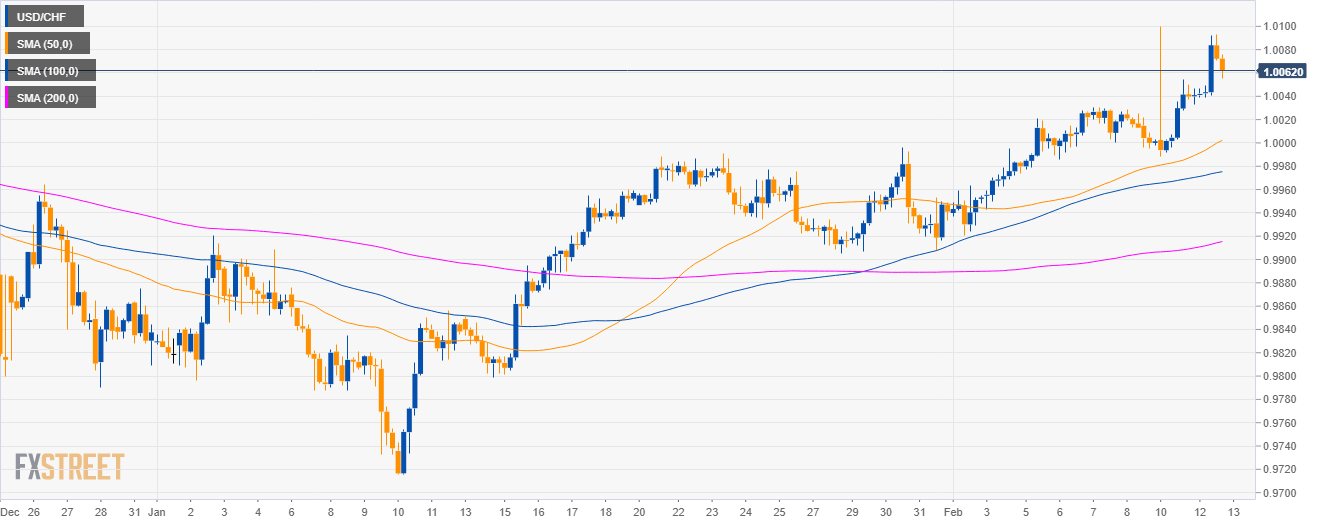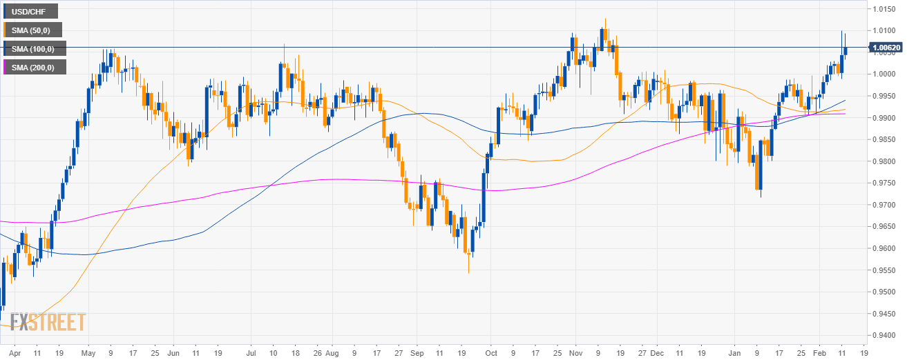 - USD/CHF is trading in a sideways trend above the 50, 100 and 200-day simple moving averages (SMAs).