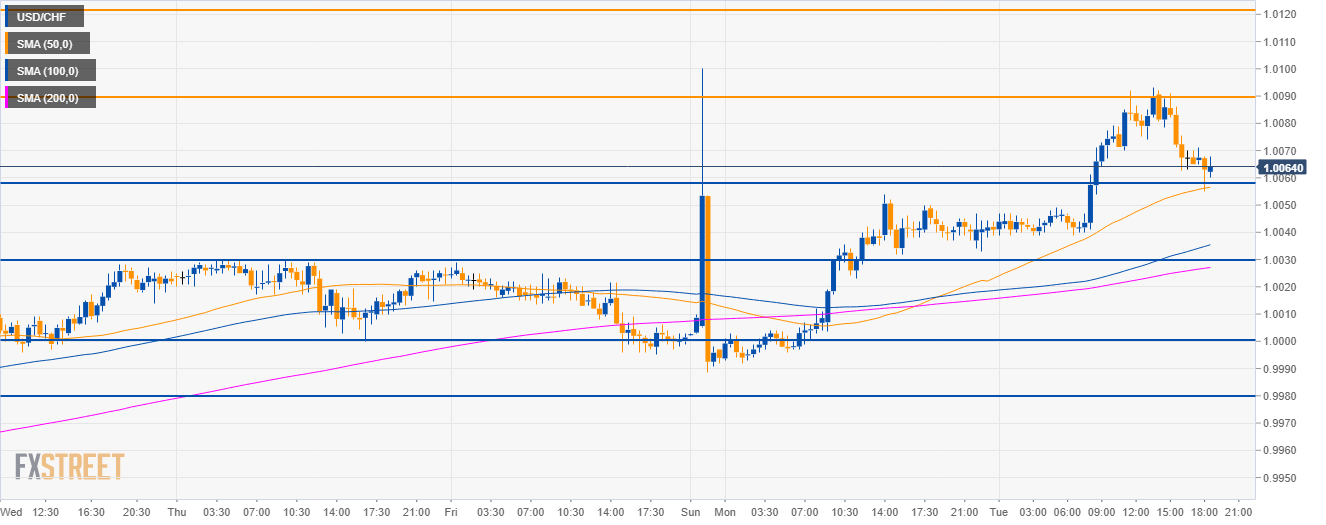 - USD/CHF is evolving above its main SMAs suggesting bullish momentum as the bulls are trying to find some support at the 50 SMA and the 1.0060 level.