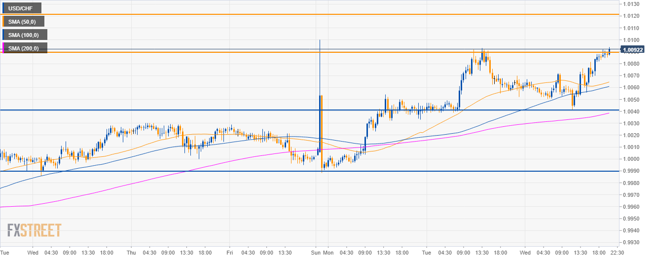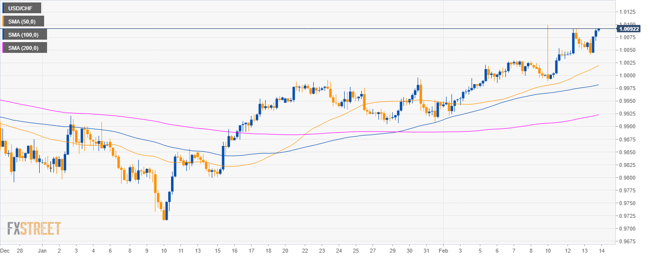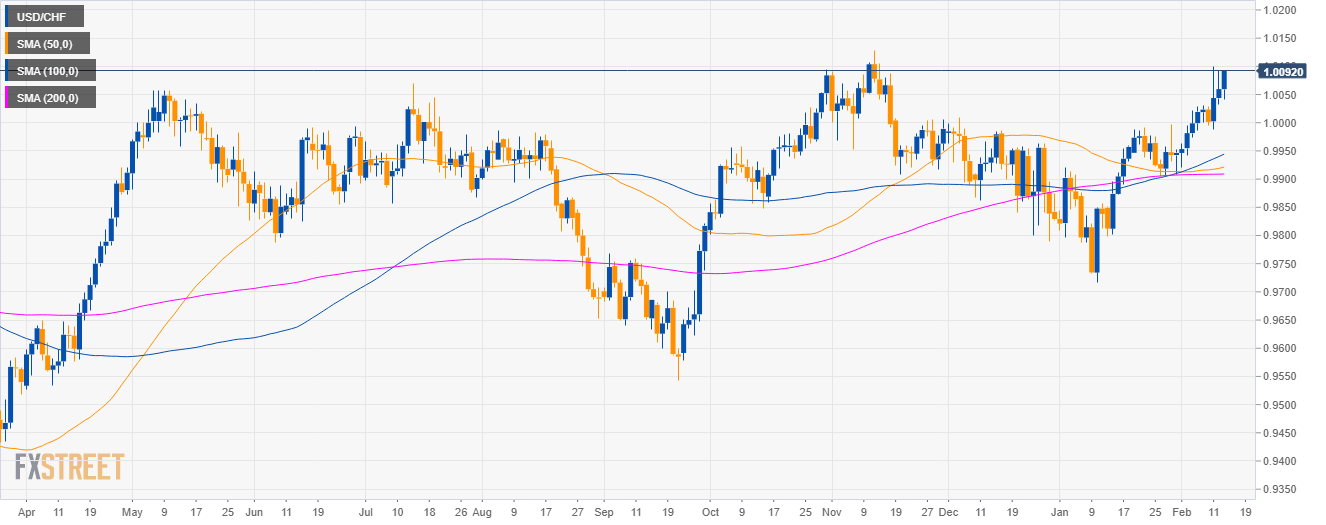 - USD/CHF is trading in a sideways trend above the 50, 100 and 200-day simple moving averages (SMAs).
