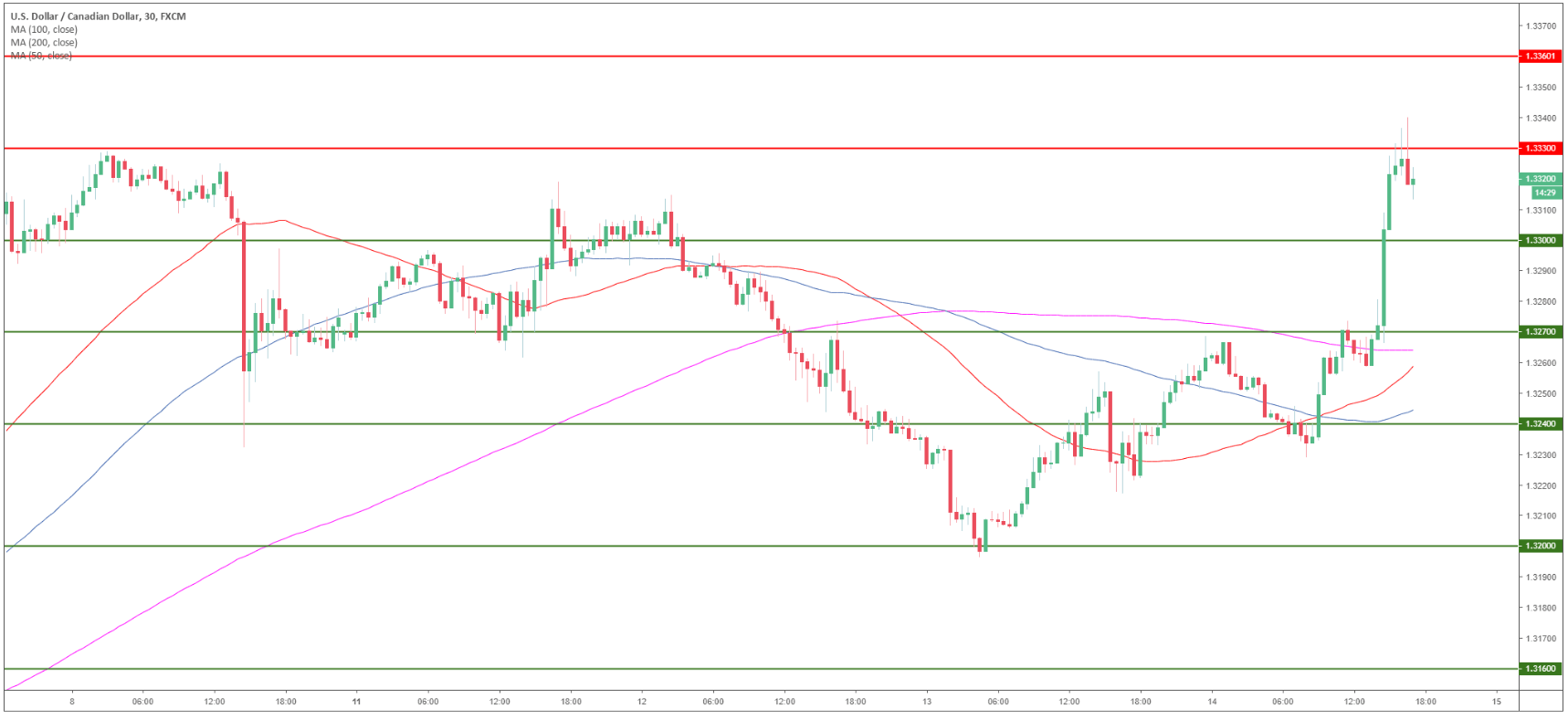 USD/CAD 30-minute chart