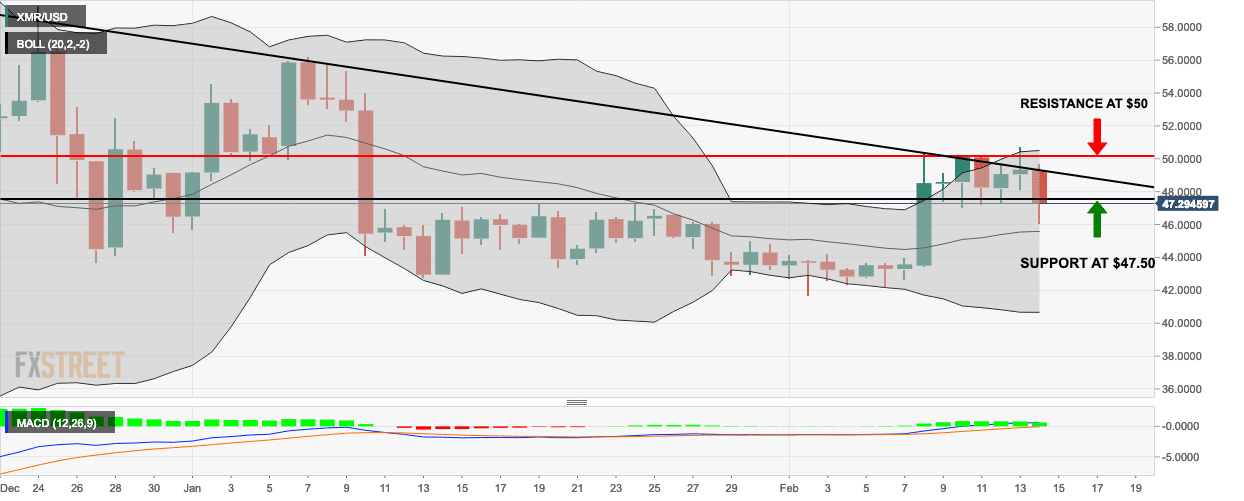 - XMR/USD’s price has gone down from $49.25 to $47.25, losing 4% of its price in the process.