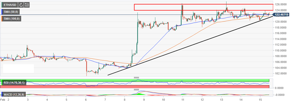In the meantime, Ethereum is trading at $122.44. The asset is supported immediately by the hourly 50-day Simple Moving Average. The 100-day SMA act as another support line at $122. Looking at the char, while Ethereum upside is limited below $130, the asset has sustained trading above the bullish trendline. In the event bears increase their grip, the price could bounce back on touching the trendline and prevent declines towards $120 (vital support). The previous resistance zones at $110 and $105 will also offer support.