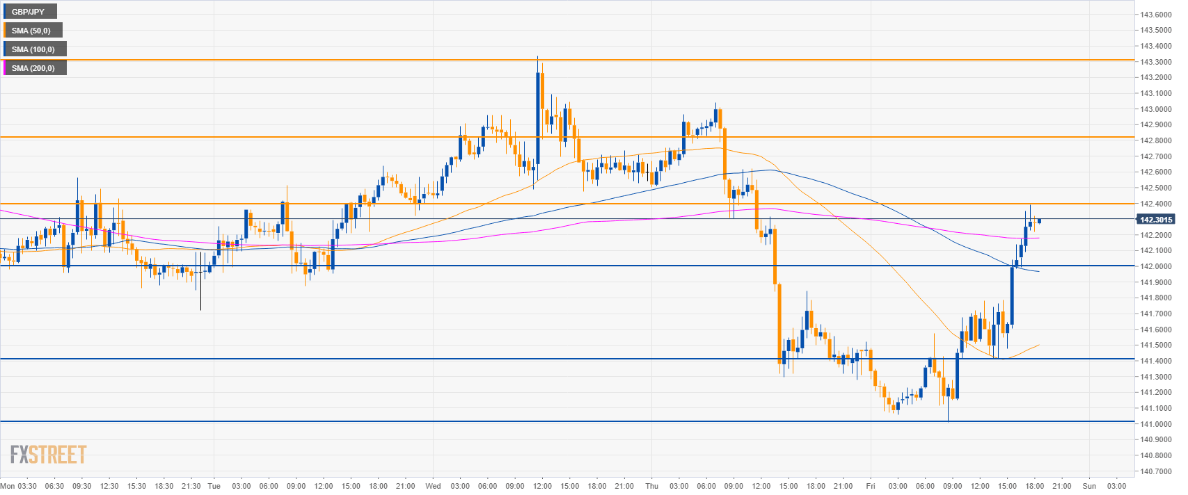 - The level to beat for bulls is 142.40. Resistances to the upside are seen near 142.80 and 143.30.
