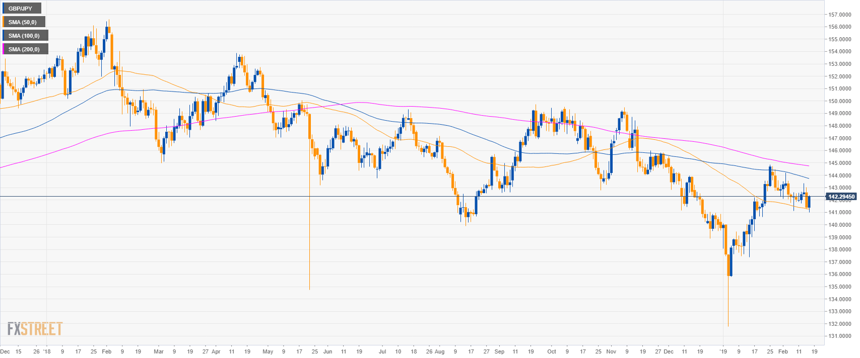 - GBP/JPY is trading between the 50 and 200-day simple moving averages (SMAs) suggesting a sideways market.