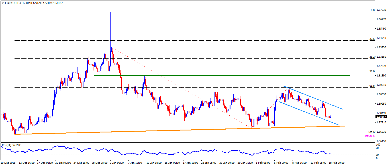 EUR/AUD Technical Analysis: Descending trend-channel highlights 1.5730 support