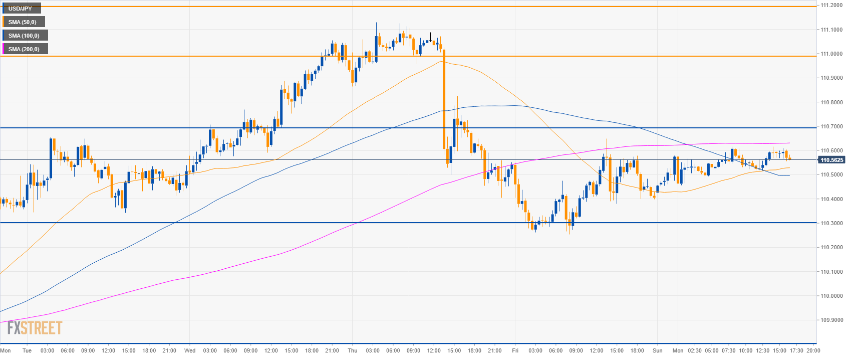 - USD/JPY is capped by 110.70 and the 200 SMA suggesting a decline in price in the coming sessions.