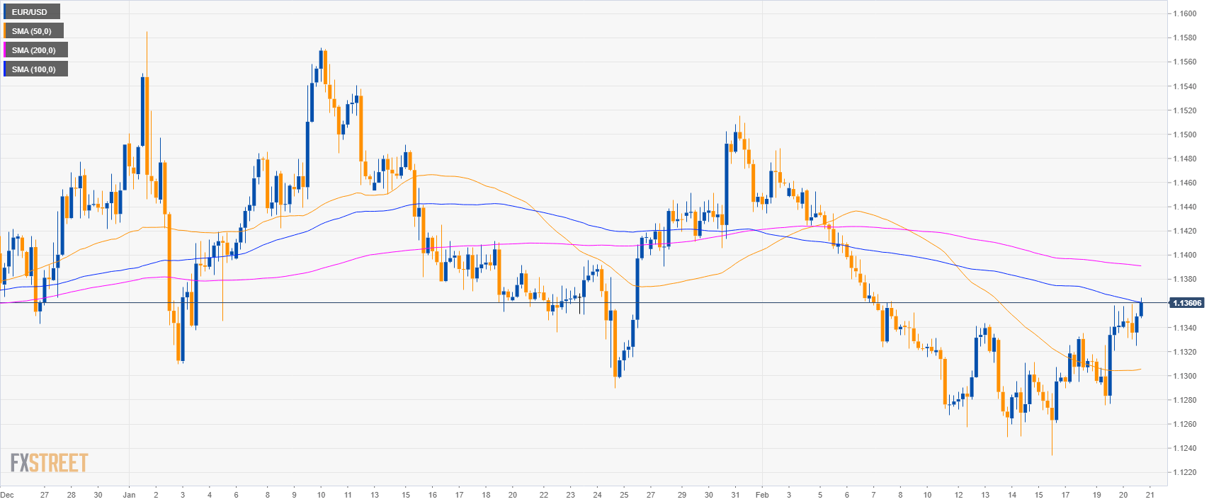 - EUR/USD bulls are challenging the 100 SMA.