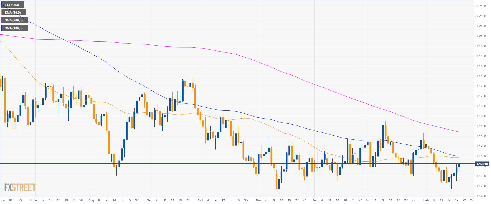 - EUR/USD is evolving in a bear trend below the 200-day simple moving average (SMA).