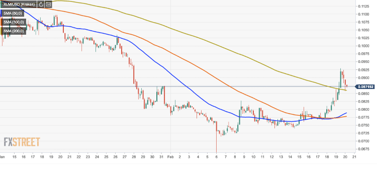 XLM/USD is changing hands at $0.0871, 2% higher from this time on Tuesday. The coin bottomed out at $0.0665 on February 6. Since that time, Stellar’s market value increased by 36%. Now it takes the 8th place in the global cryptocurrency rating compiled by CoinMarketCap.