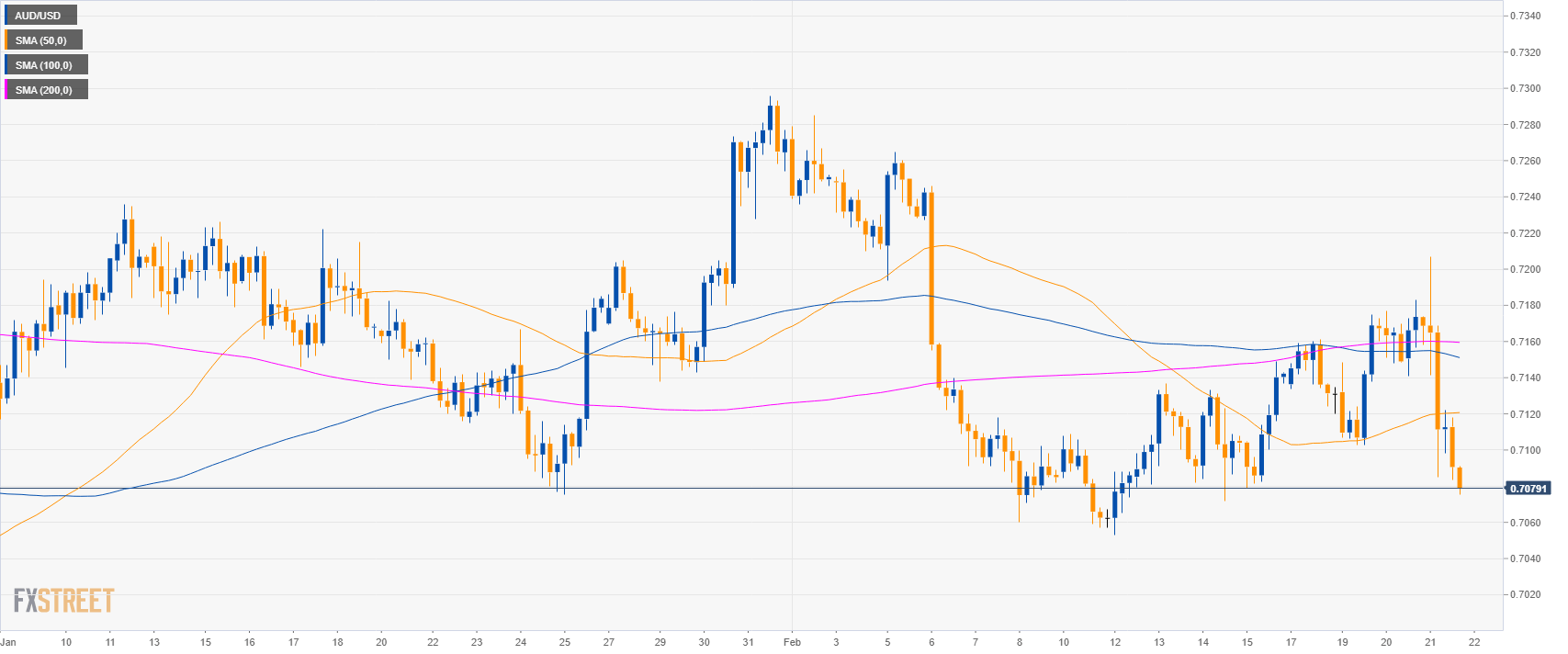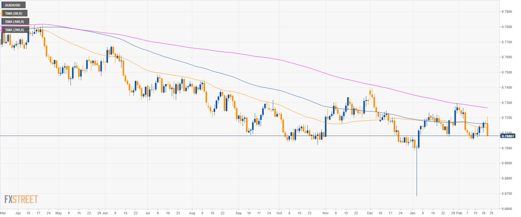 - On the daily time-frame, AUD/USD is trading below its main simple moving averages suggesting bearish momentum.