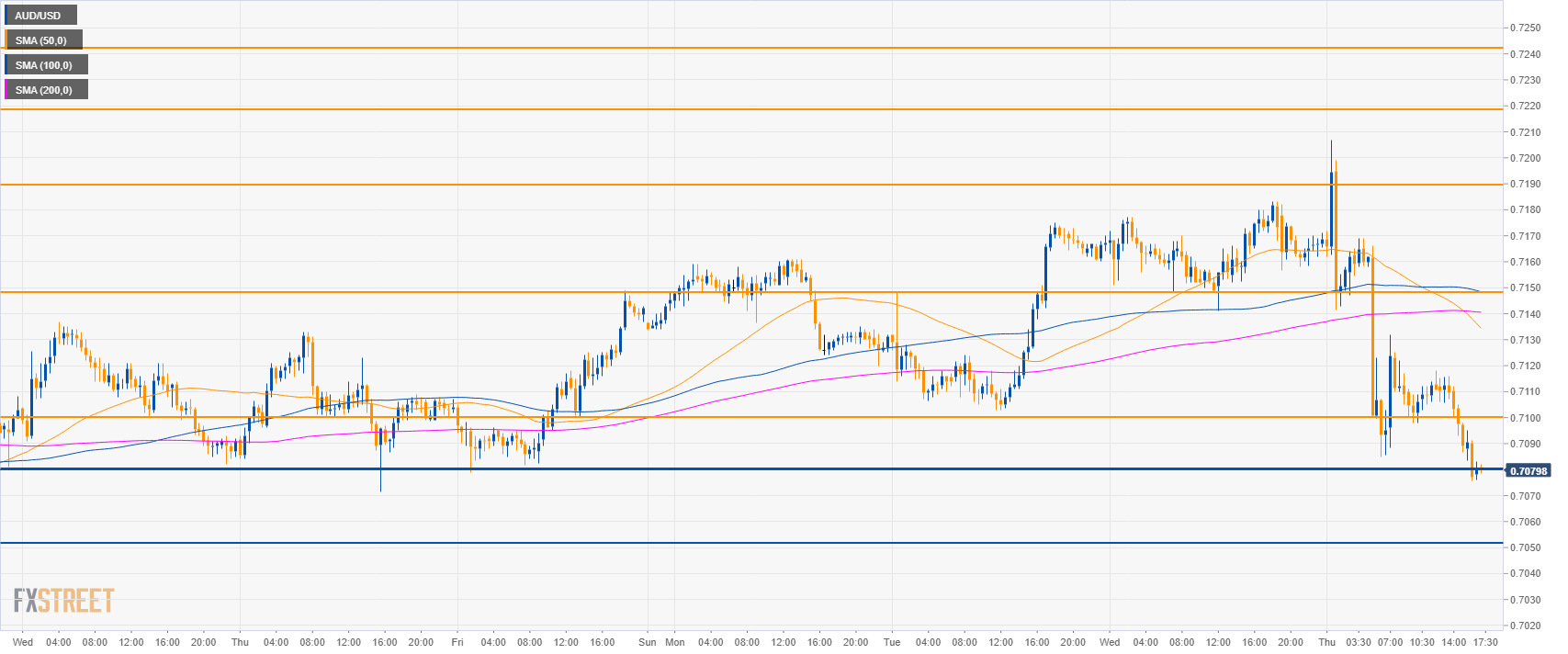 - Bears need to break below 0.7080 level to reach 0.7050 to the downside.