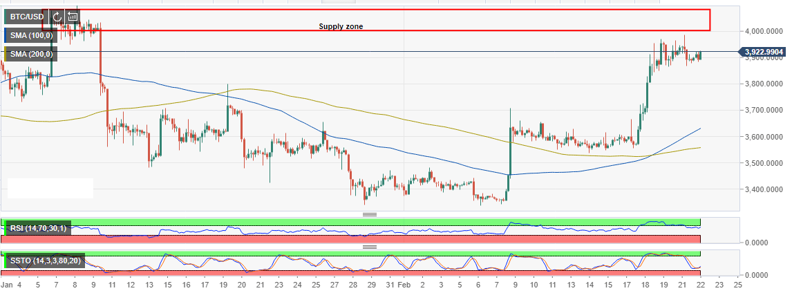 Bitcoin is trending higher by 0.5% on Friday. It has been a week of formidable bullish performance not just for Bitcoin but for the rest of the digital assets. Bitcoin resumed the uptrend from the region slightly below $3,600 on Monday. This paved the way for a bull rally as Bitcoin scaled the levels above $3,700, $3,800 and finally sat above $3,900. There were attempts to correct towards $4,000 psychological hurdle but the bulls gave and Bitcoin dipped below $3,900 yesterday.