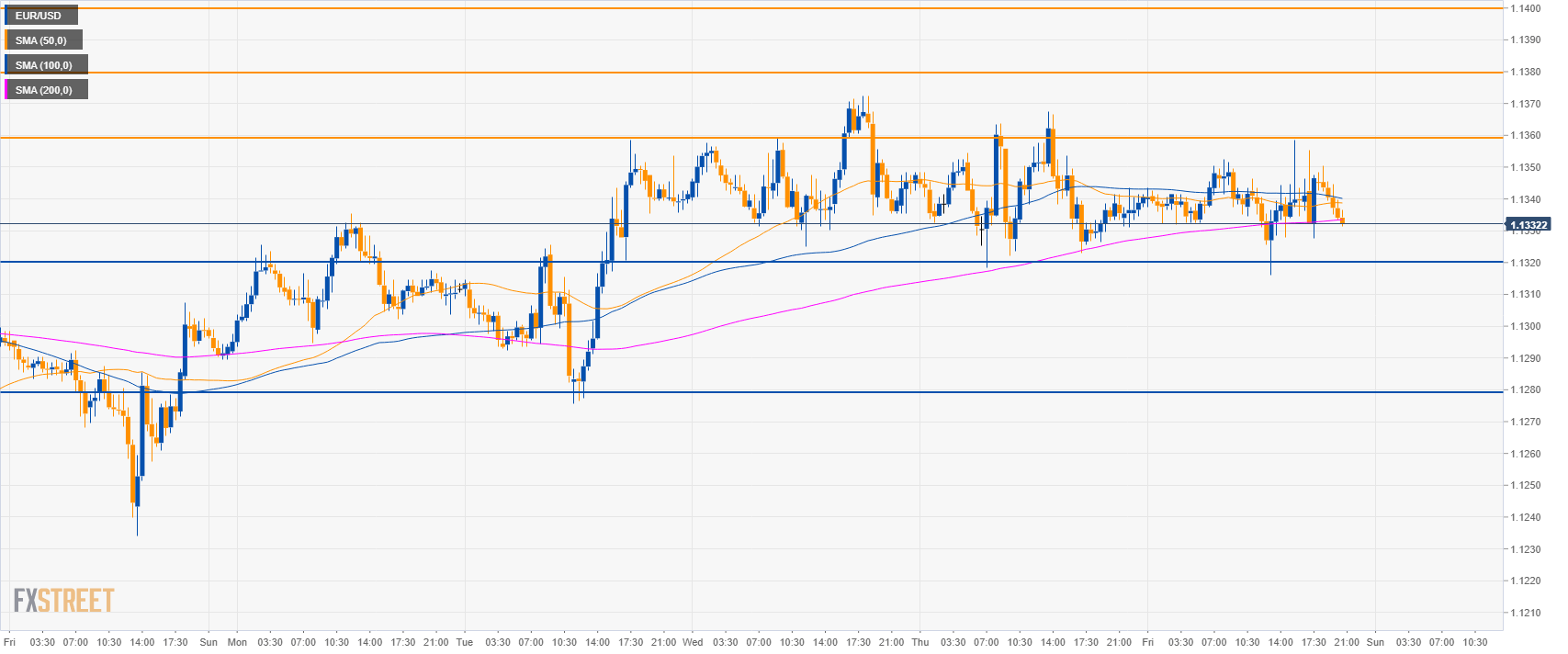 - EUR/USD is trading in a tight trading range between 1.1320 and 1.1360 level.
