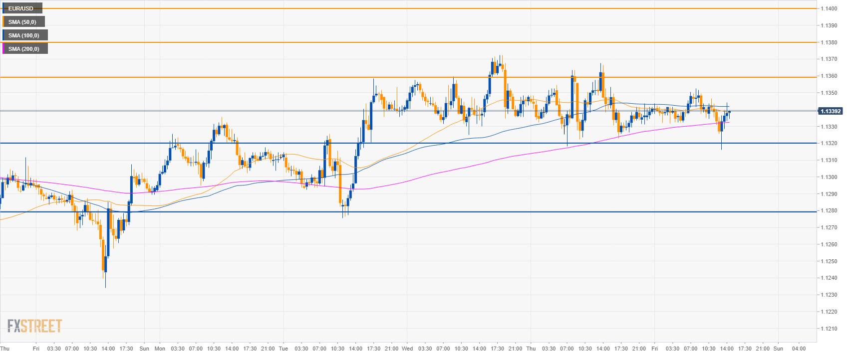 - EUR/USD is trading in a tight range between 1.1320 and 1.1360.