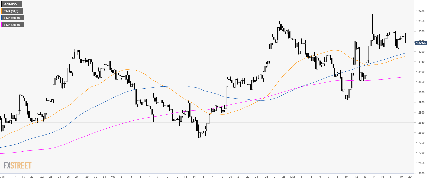 - GBP/USD is trading in a bull trend above its main simple moving averages (SMAs).