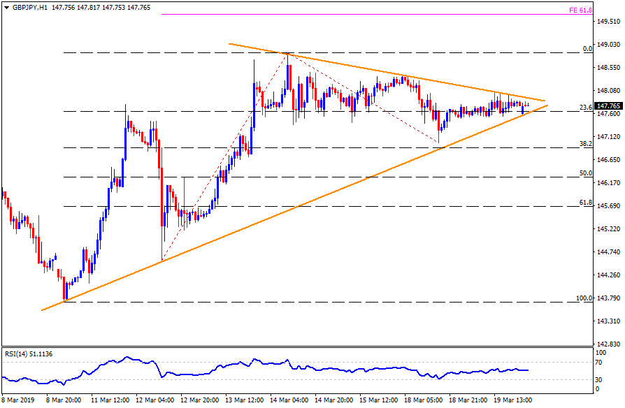 GBP/JPY Technical Analysis: Triangle formation challenge trade sentiment between 147.50/148.00 area