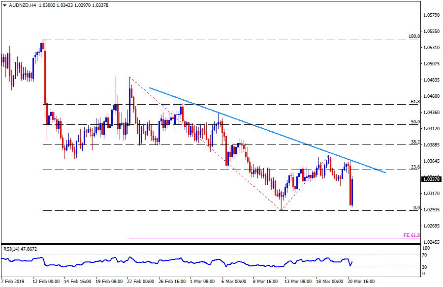Alternatively, pair’s slip under 1.0297 may need to clear early-month low around 1.0290 in order to aim for 61.8% Fibonacci expansion (FE) level of 1.0250.