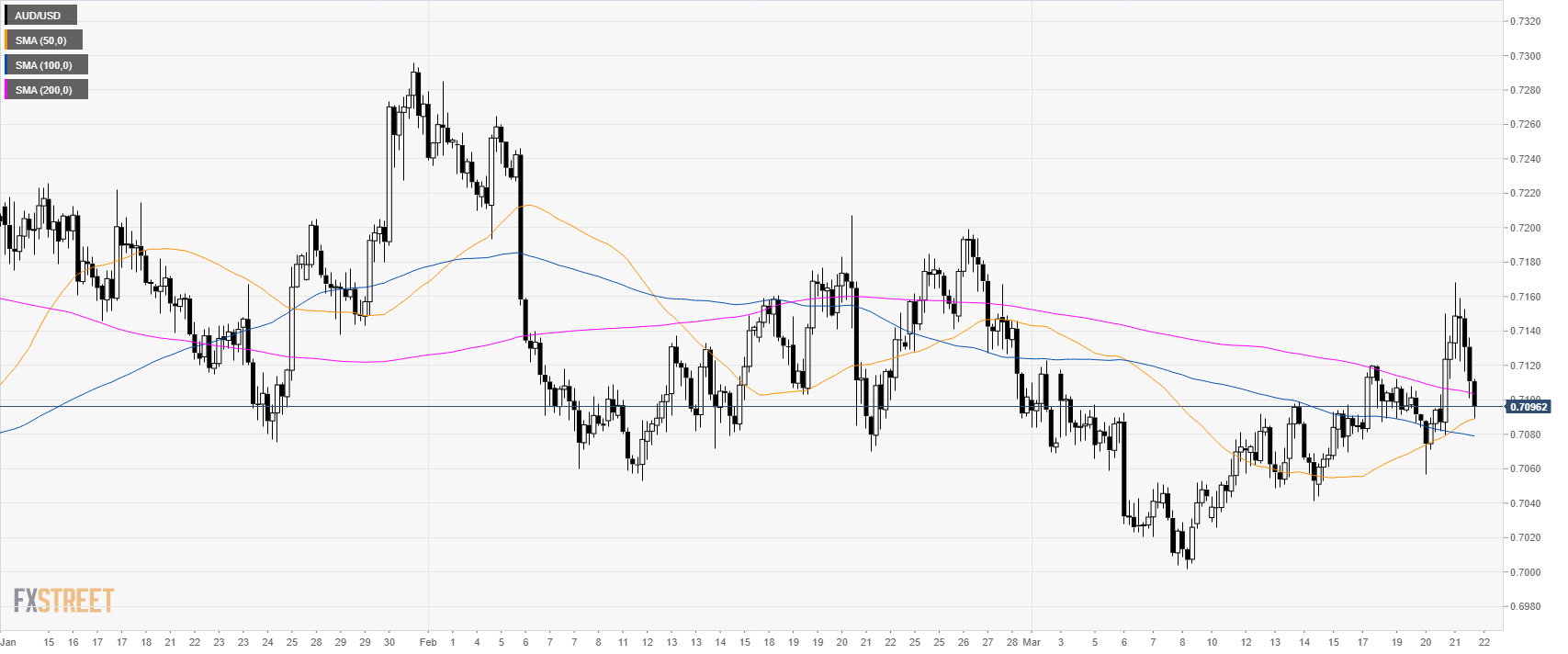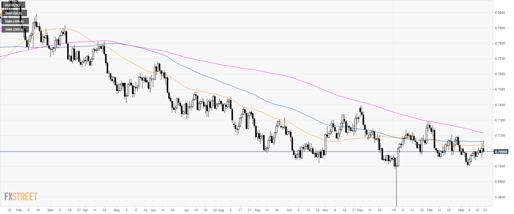 - AUD/USD is trading between the 50 and 200 SMAs suggesting a consolidation phase in the medium-term.