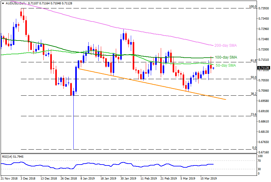 - Meanwhile, 50-day SMA level of 0.7130 and 100-day SMA level of 0.7160 can limit the pair’s near-term upside.