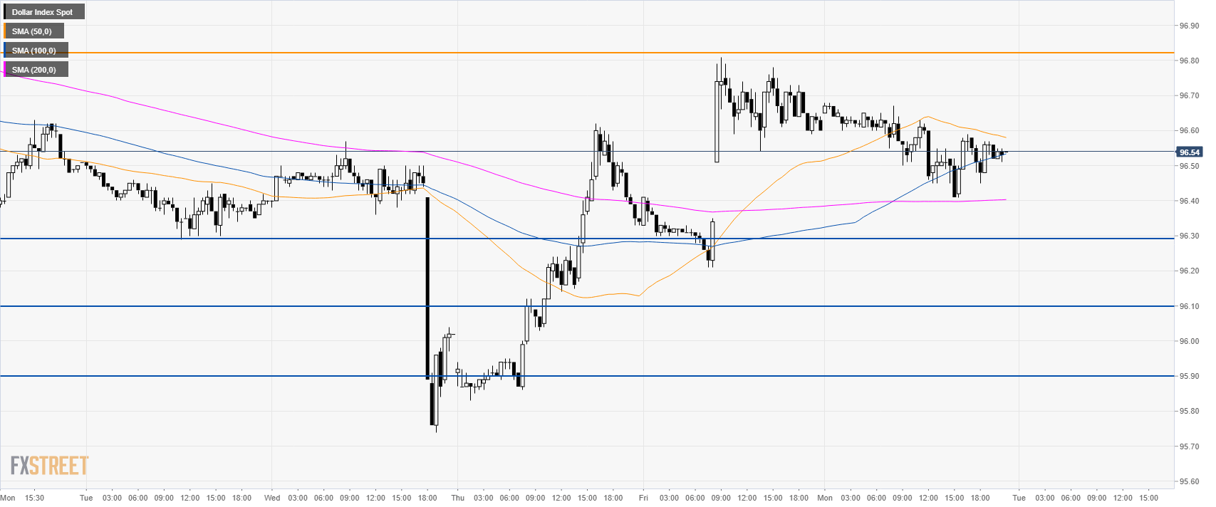 Home US Dollar Index Technical: Greenback bulls hold the market above 96.30 support