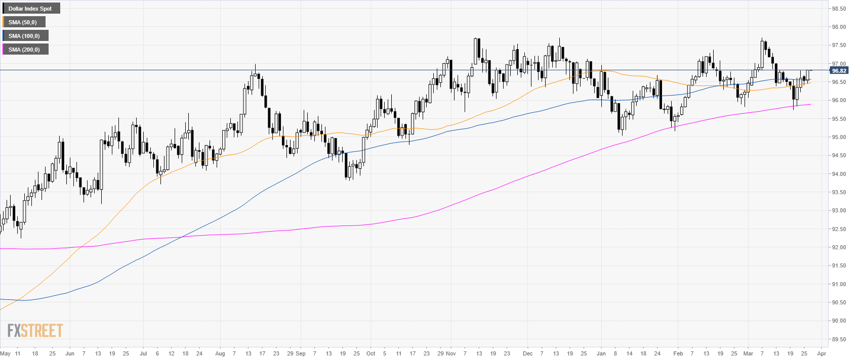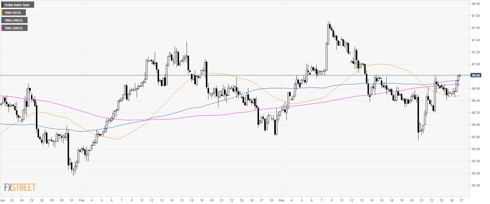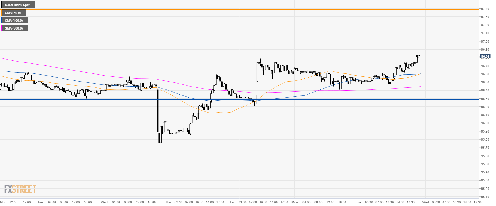 - 96.80, 97.00 and 97.40 are the next resistances to overcome to the upside.