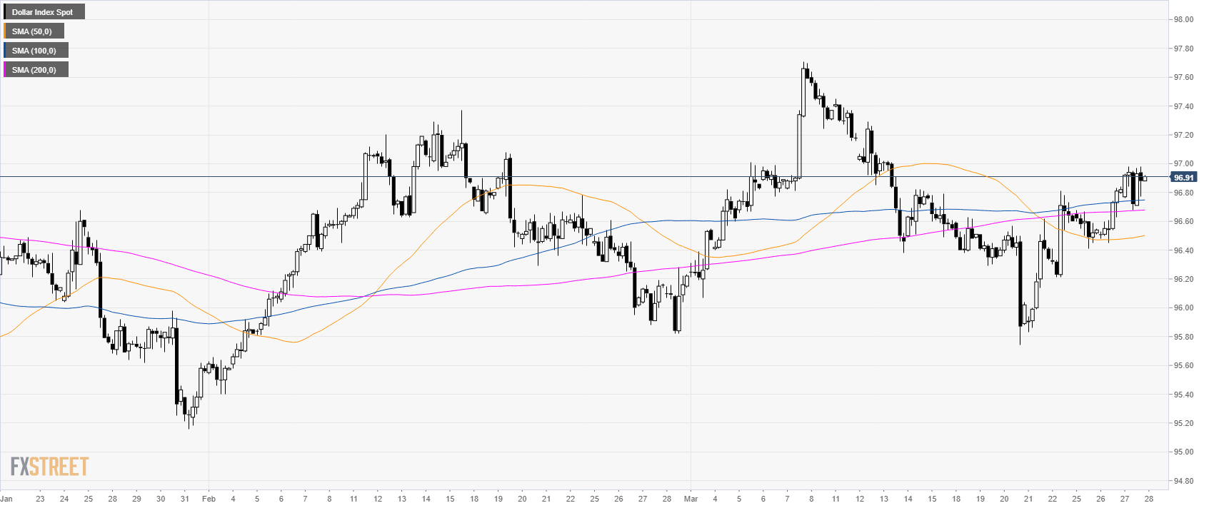 - 97.00 is a key resistance for bulls to break above. The next resistances are seen at 97.20 and 97.40 level.