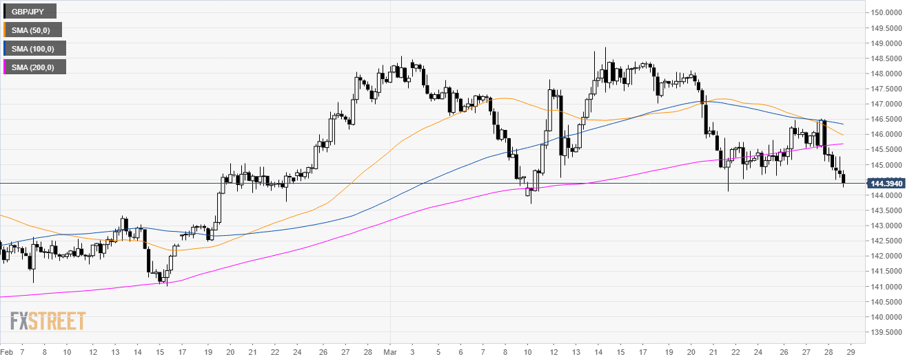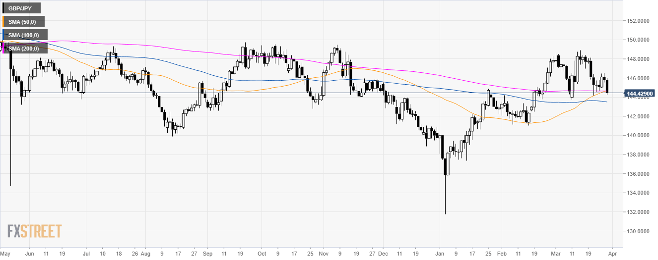GBP/JPY Technical Analysis: Sterling at daily lows below 144.50 against Yen