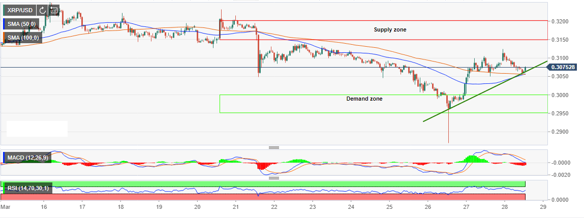 - Ripple extended declines under the demand zone between $0.2950 and $0.30.